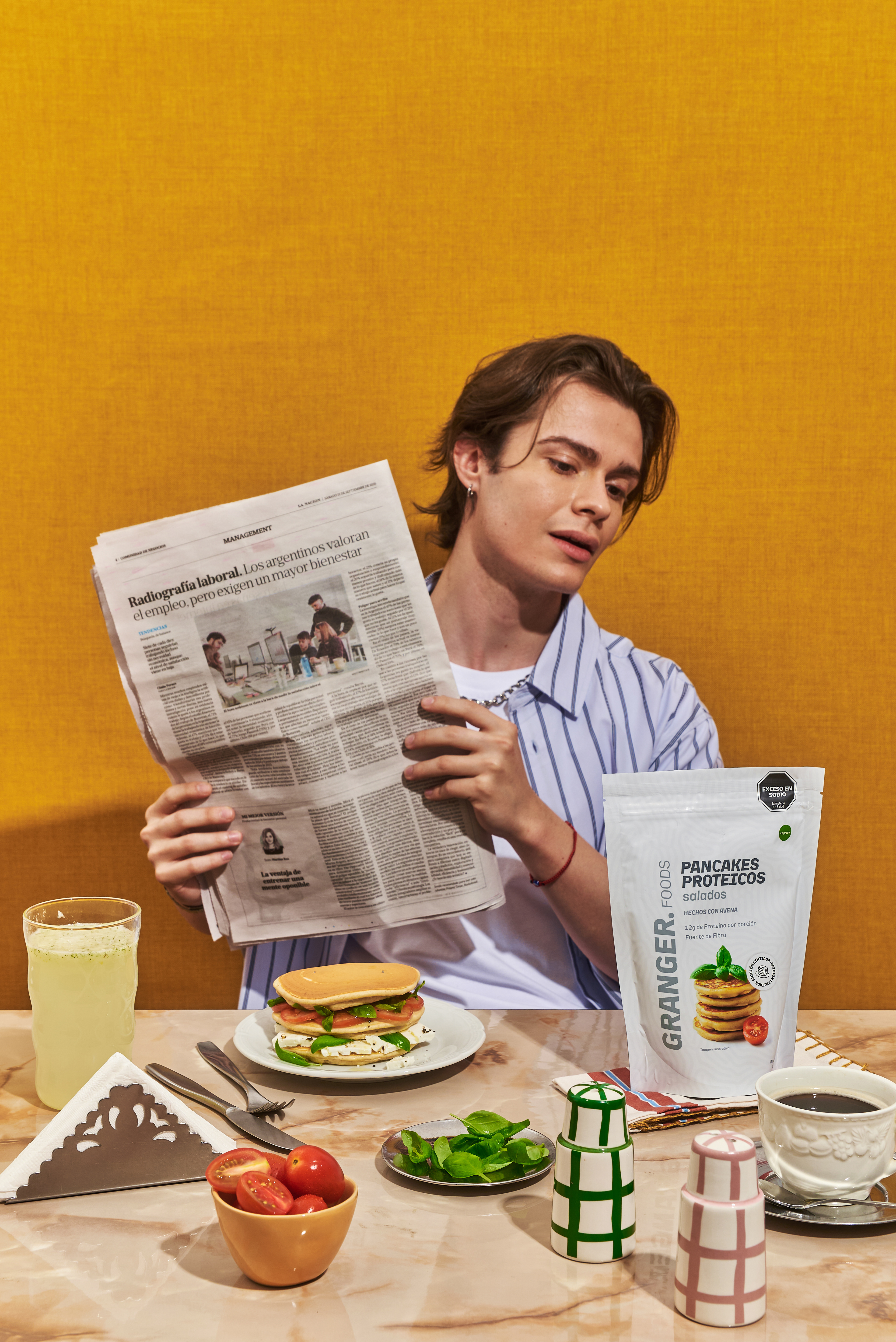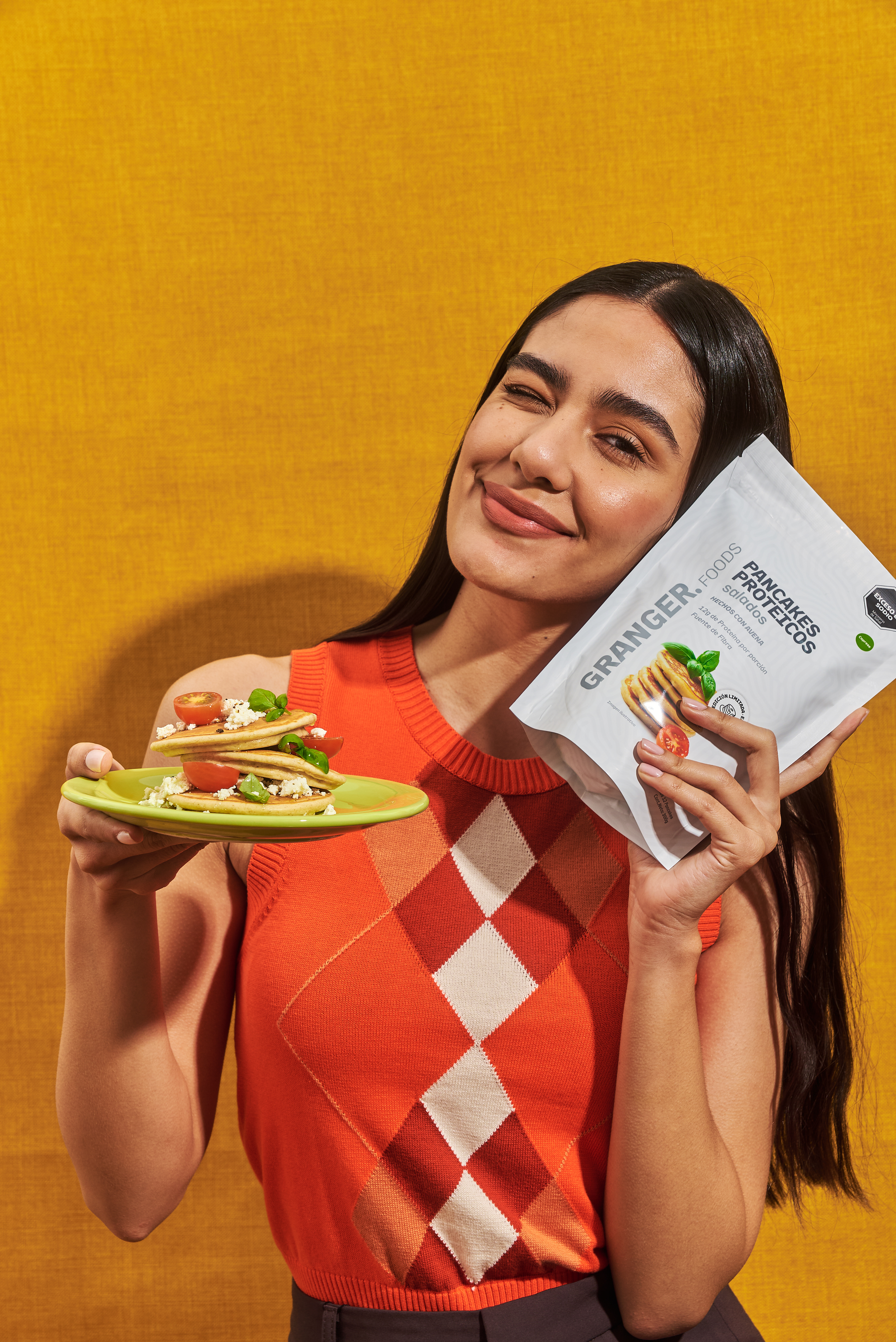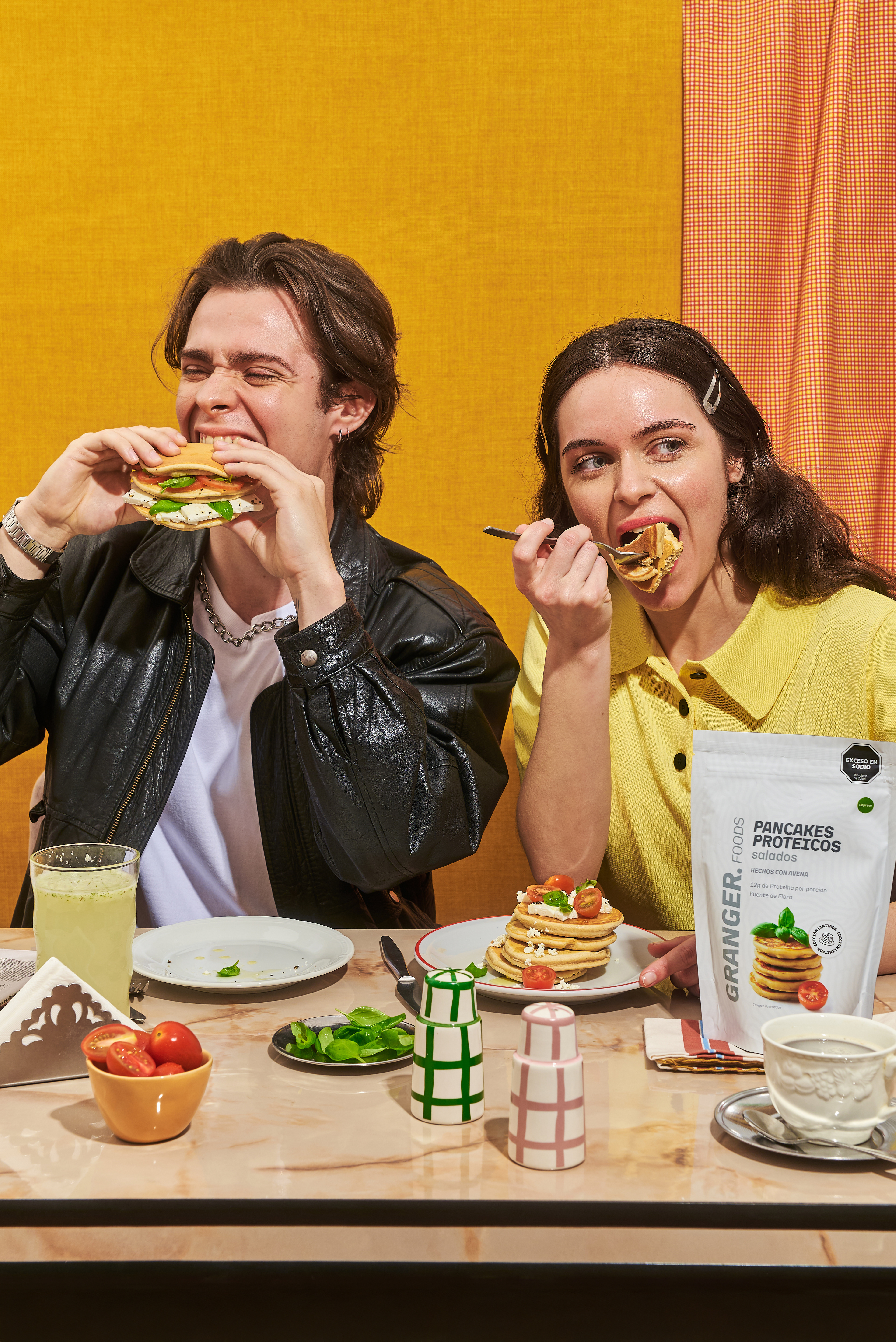 Un concepto para los pancakes proteicos de Granger. Llevados a una estética moderna + años 50's. Hicimos retratos con modelos, fotografías de producto y stop motion, en un shooting con arte, food styling y estilismo de moda.