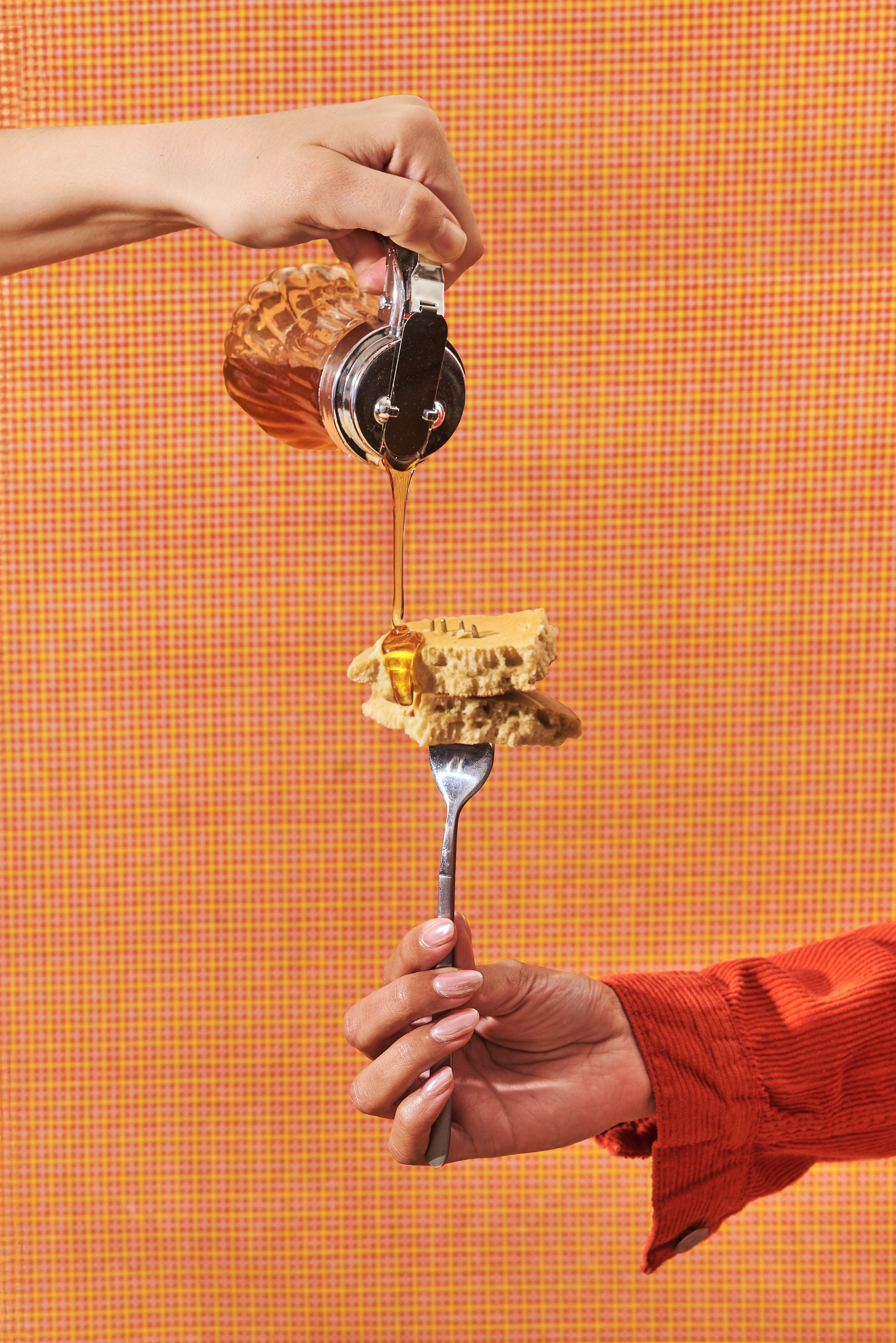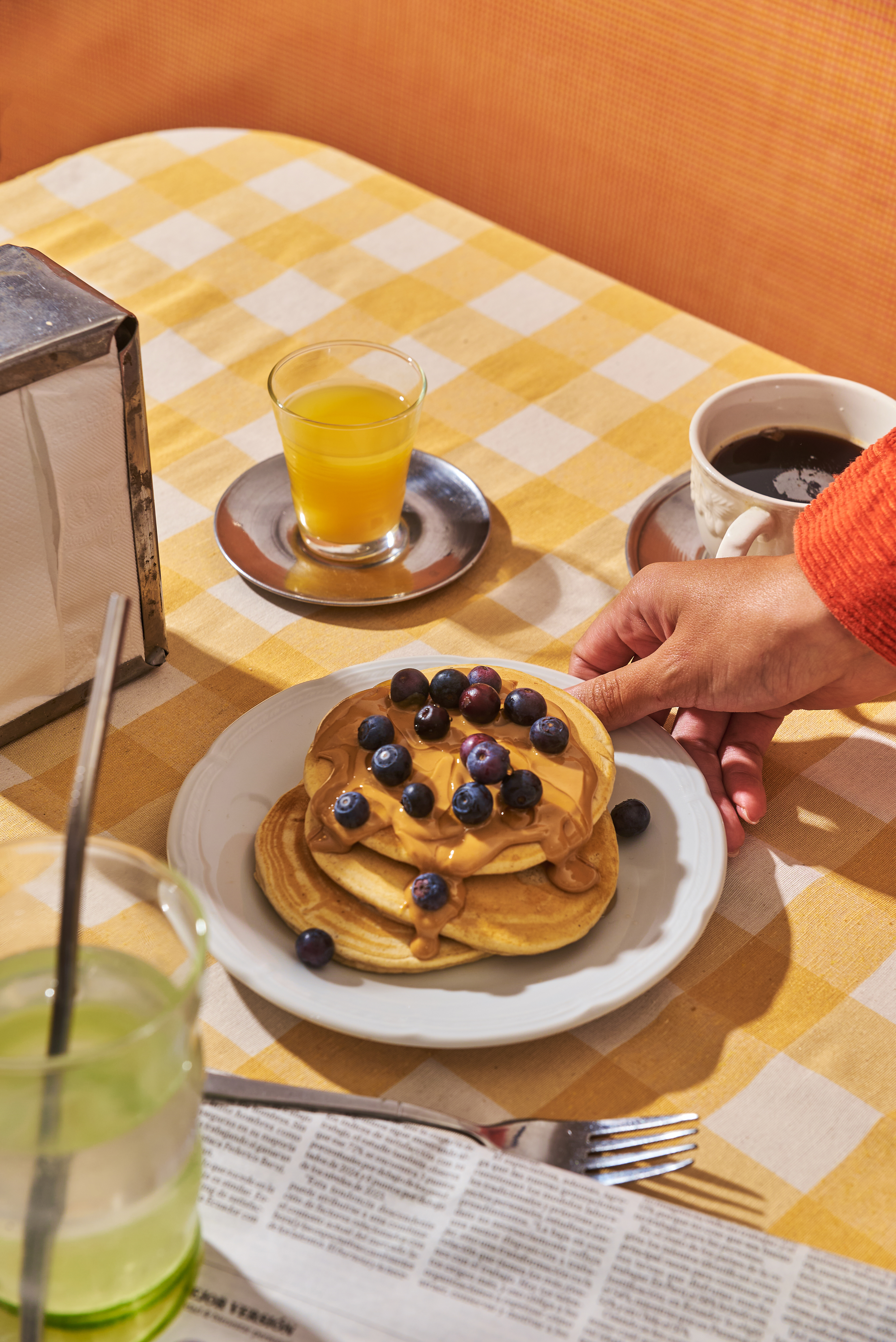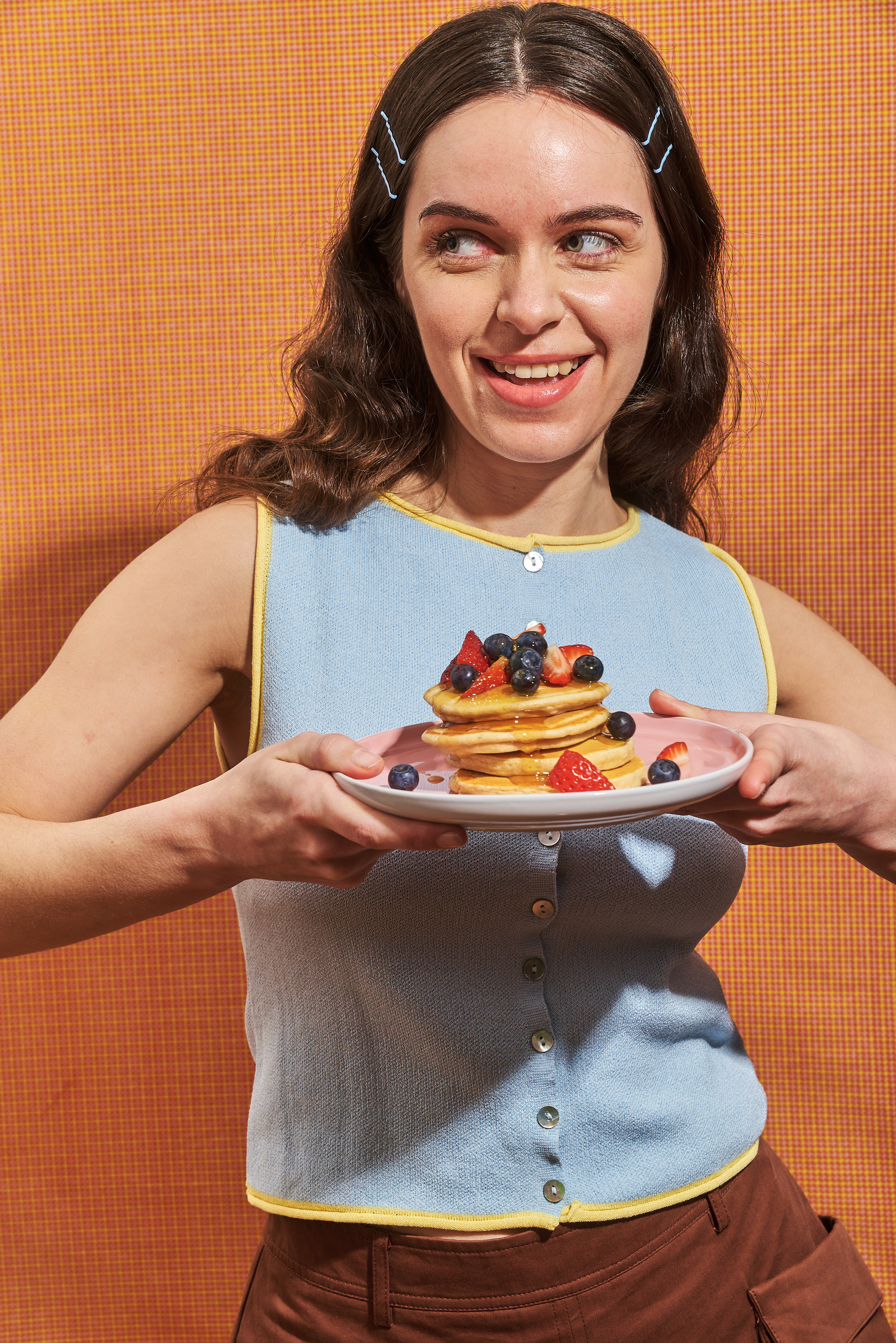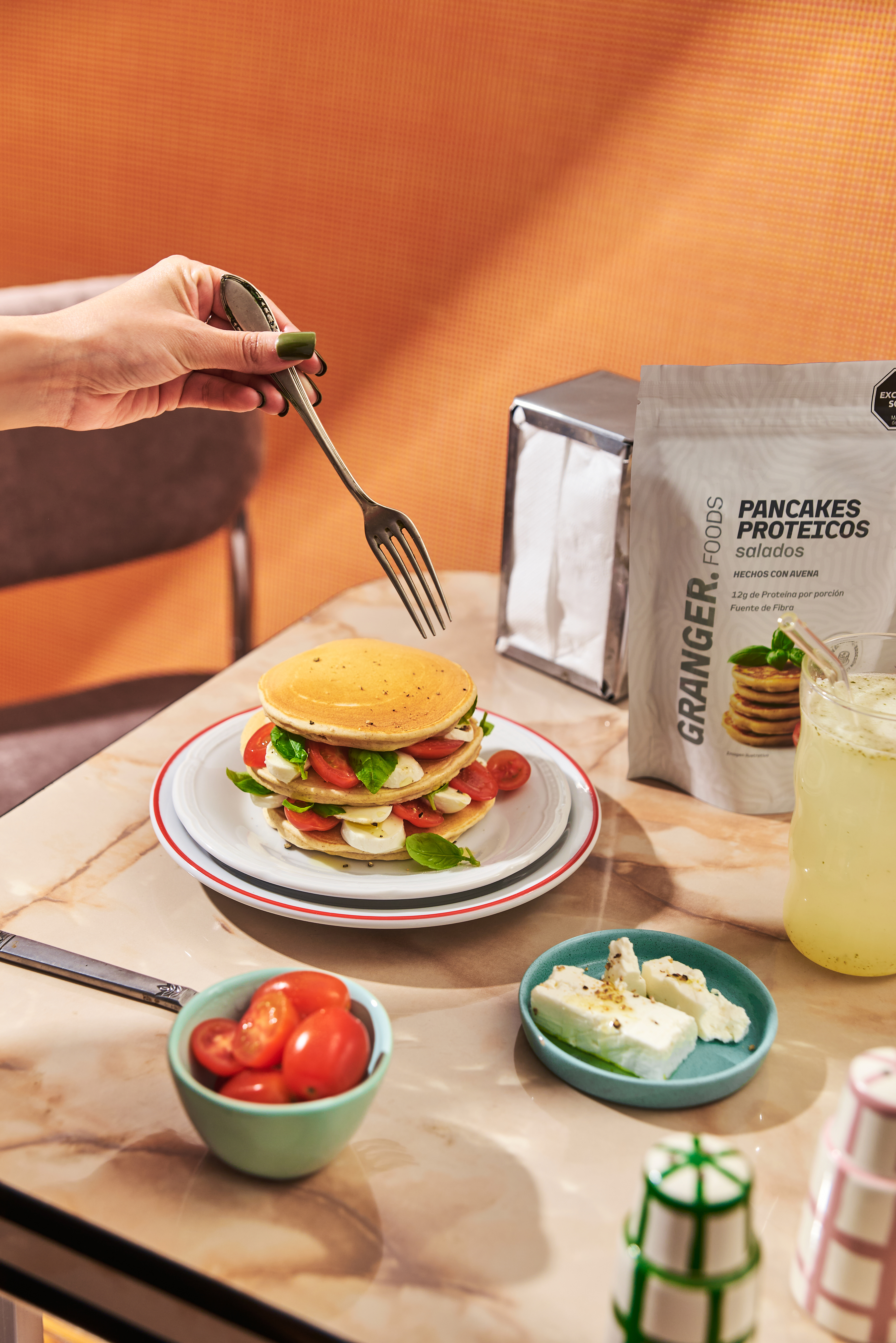 Un concepto para los pancakes proteicos de Granger. Llevados a una estética moderna + años 50's. Hicimos retratos con modelos, fotografías de producto y stop motion, en un shooting con arte, food styling y estilismo de moda.